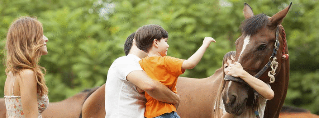 Horses can have a calming presence for people. Studies show that even spending as little as 10 to 15 minutes with horses increases endorphins (a happy, feel-good hormone) and decreases cortisol (a hormone that controls stress and arousal).