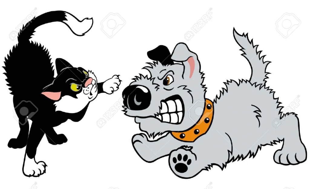 The origin of the phrase “fighting like cats and dogs” is somewhat ambiguous, dating back a few hundred years, but the domestication of cats and dogs factors into the equation.