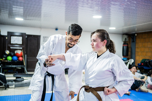 In karate, teachers are often referred to as “sensei,” a Japanese term meaning “teacher” or “instructor.”